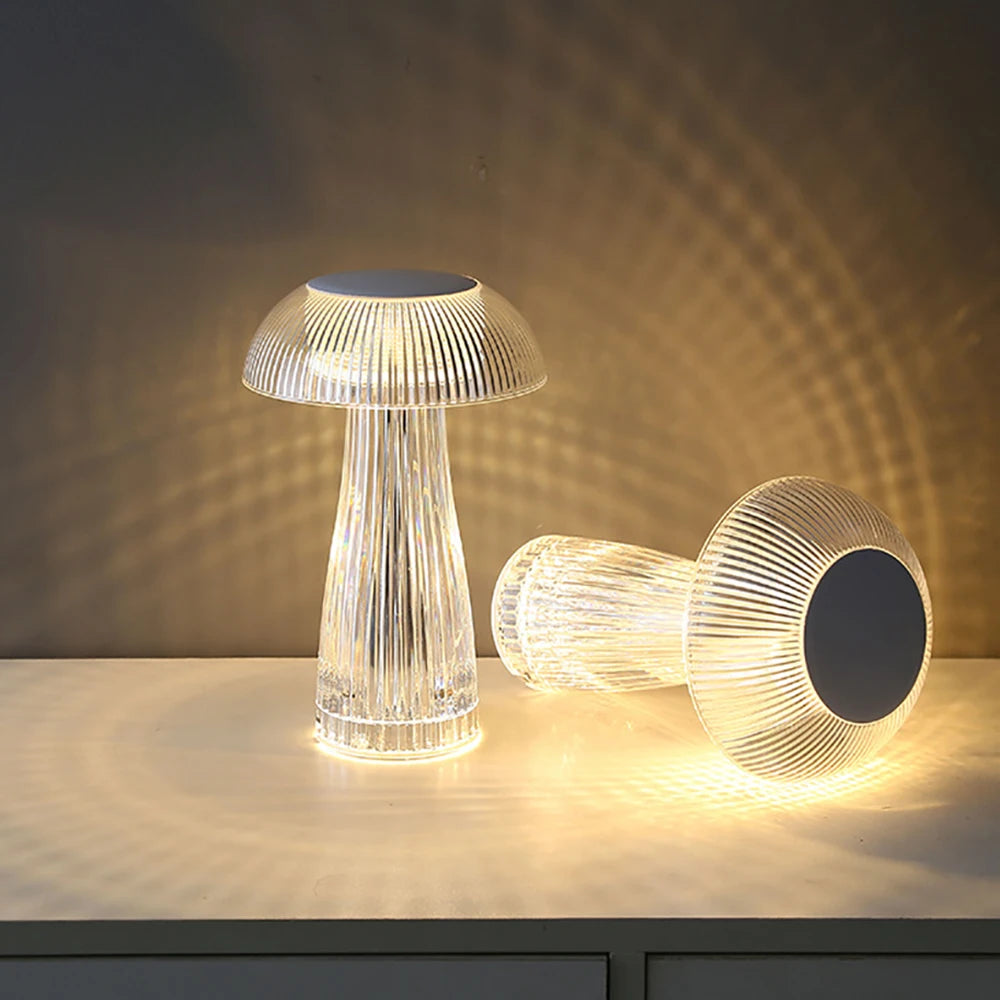 A Luminária de Cristal Cogumelo LED combina design moderno e brilho refinado, criando um efeito visual deslumbrante em qualquer espaço. Ideal para quartos, salas, cafés e até ambientes decorativos sofisticados como bares e restaurantes.